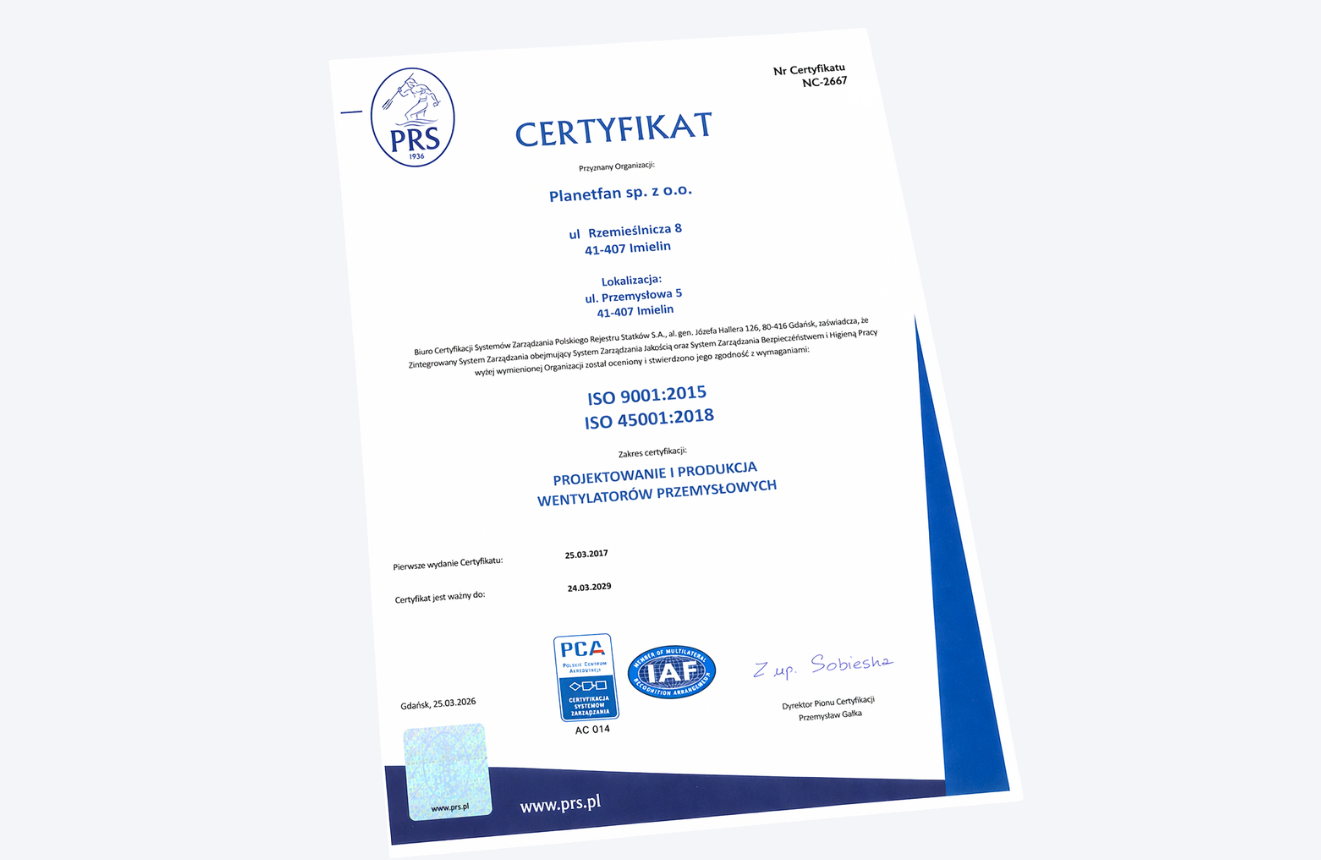 Od 01.07.2013r. skoncentrowaliśmy się na rozwoju i specjalizacji produkcji w zakresie wentylatorów przemysłowych pod marką Planetfan. Naszym nadrzędnym celem jest produkcja wentylatorów, spełniających oczekiwania naszych Klientów.